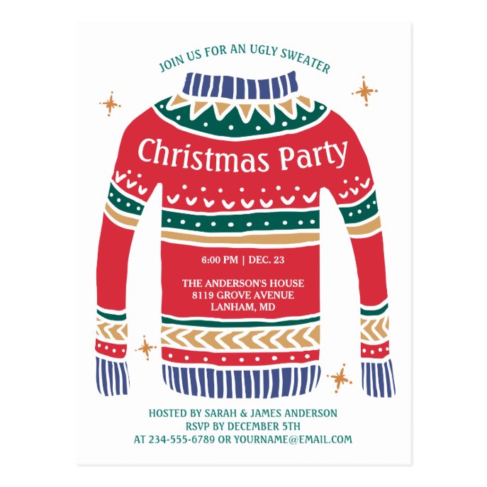 Christmas Ugly Sweater Holiday Party Postcard christmas cards Christmas Ugly Sweater Holiday Party Postcard $1.20 by CardHunter https://ift.tt/342voot https://ift.tt/3375np4 Comments