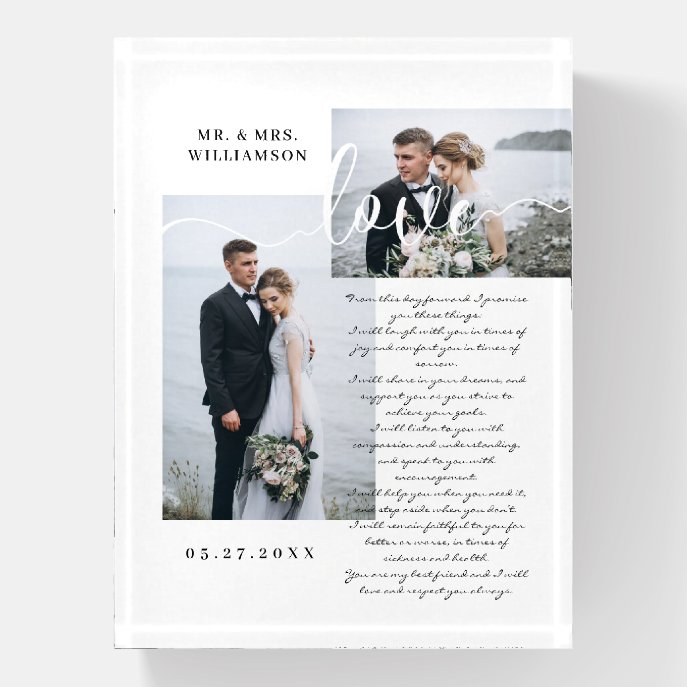 Elegant Wedding Vows Love Script Minimal Two Photo Paperweight Elegant Wedding Vows Love Script Minimal Two Photo Paperweight $33.43 by moodthology Comments
