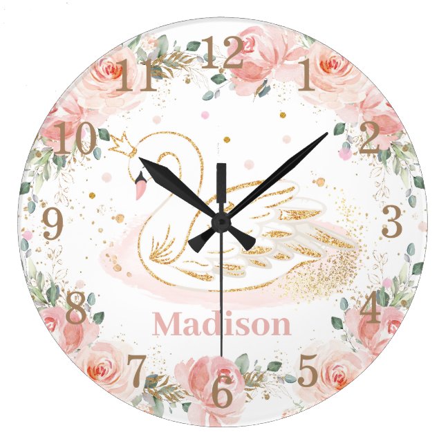 Chic Swan Princess Pastel Blush Floral Gold Large Clock clocks Chic Swan Princess Pastel Blush Floral Gold Large Clock $36.85 by LollipopParty Comments