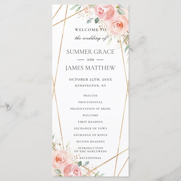 Soft Blush Pink Floral Geometric Wedding Program programs Soft Blush Pink Floral Geometric Wedding Program $2.35 by LollipopParty Comments
