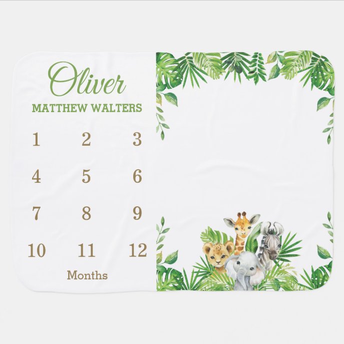 Jungle Animals Safari Greenery Monthly Milestone Baby Blanket blankets milestones Jungle Animals Safari Greenery Monthly Milestone Baby Blanket $44.65 by LollipopParty Comments