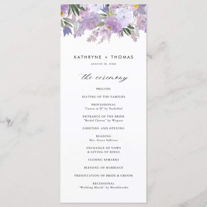 Watercolor Dusty Purple Flowers Wedding Ceremony Program programs Watercolor Dusty Purple Flowers Wedding Ceremony Program $2.35 by misstallulah Comments