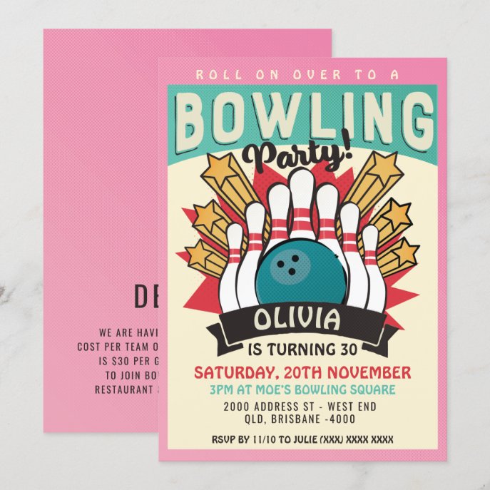 Pink Retro Bowling Birthday Party Invitation birthday invitations Pink Retro Bowling Birthday Party Invitation $2.50 by MyInsanity Comments