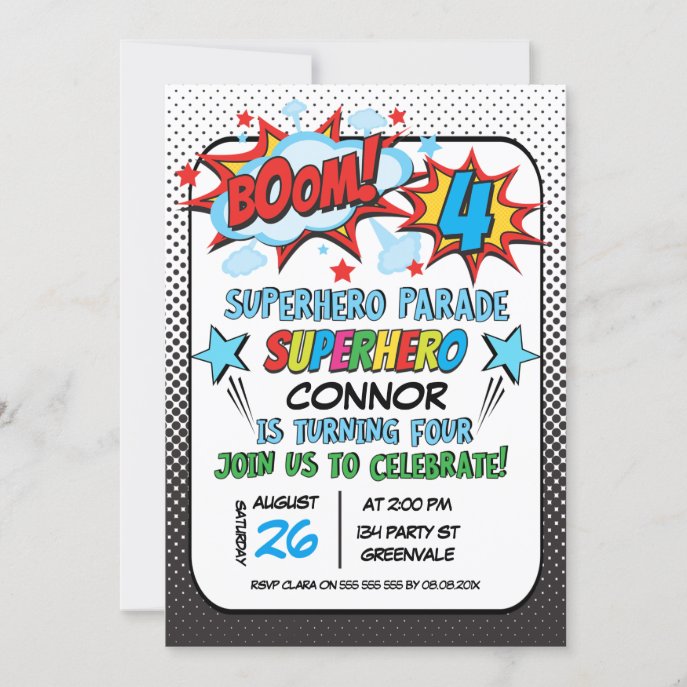 Boys Superhero Parade 4th Birthday Invitation birthday invitations Boys Superhero Parade 4th Birthday Invitation $2.40 by Sugar_Puff_Kids Comments