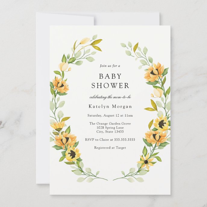 Sunflower and Greenery Wreath Baby Shower Invitation baby shower invitations Sunflower and Greenery Wreath Baby Shower Invitation $2.45 by AdorePaperCo Comments