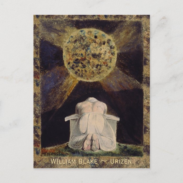 William Blake Urizen CC0486 Postcard cards carulcards Postcard made from William Blake's frontispiece to The Song of Los (1795) showing Urizen presiding over the decline of morality. Comments