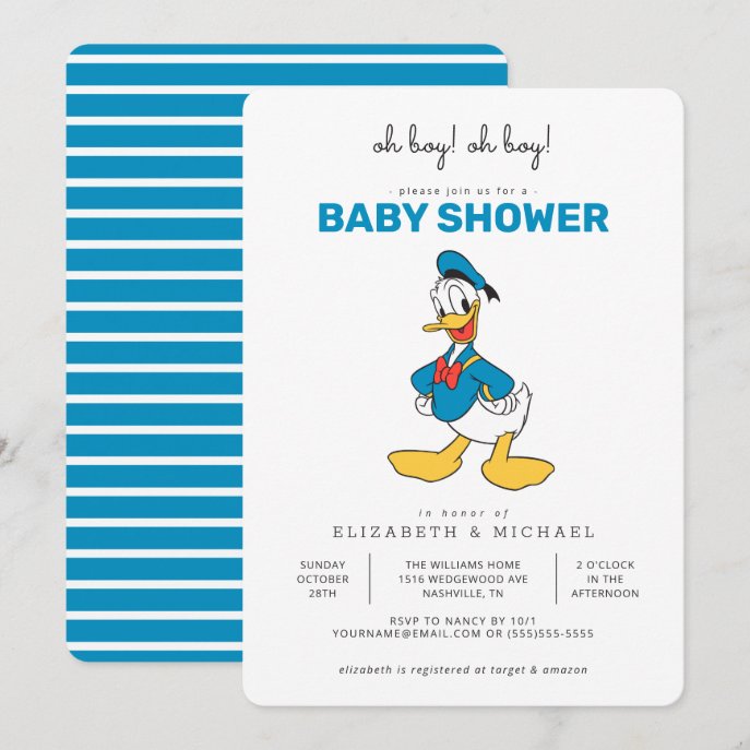 Classic Donald Duck Boy Baby Shower Invitation baby shower invitations mickeyandfriends Classic Donald Duck Boy Baby Shower Invitation $2.86 by MickeyAndFriends Comments