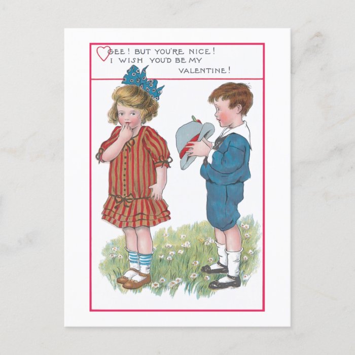 Sweet Vintage Valentine Children Holiday Postcard valentine Sweet Victorian boy and girl with Valentine greeting and red border. Comments