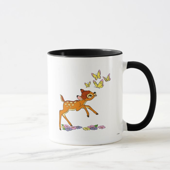 Bambi playing with butterflies mug