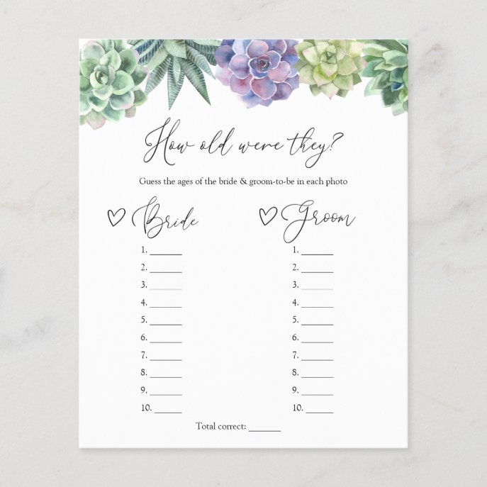 Succulent How Old Were They Bride and Groom Game games Succulent How Old Were They Bride and Groom Game $1.25 by AdorePaperCo Comments