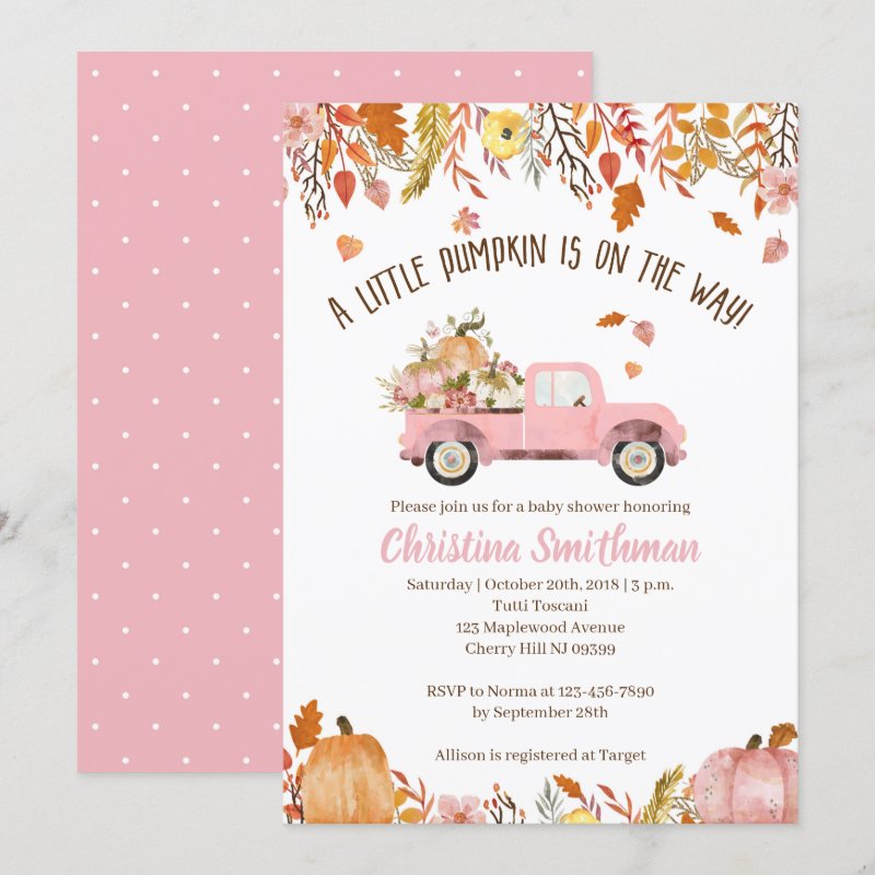 Fall Baby Shower Invitations For A Girl baby shower invitations Fall baby shower invitations for a sweet baby girl. "A little pumpkin is on the way!" The beautiful illustration work was done by RedDogStudioShop Comments