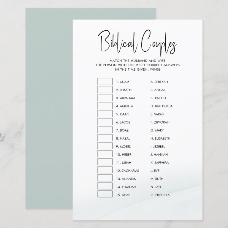 Biblical Couples Bridal Shower Game Green Wash games Biblical Couples Bridal Shower Game Green Wash $1.42 by darlingandmay Comments