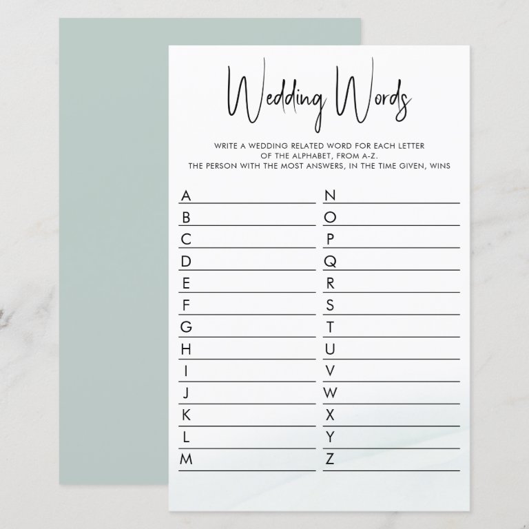 Wedding Words A to Z Bridal Shower Game Green Wash games Wedding Words A to Z Bridal Shower Game Green Wash $1.42 by darlingandmay Comments
