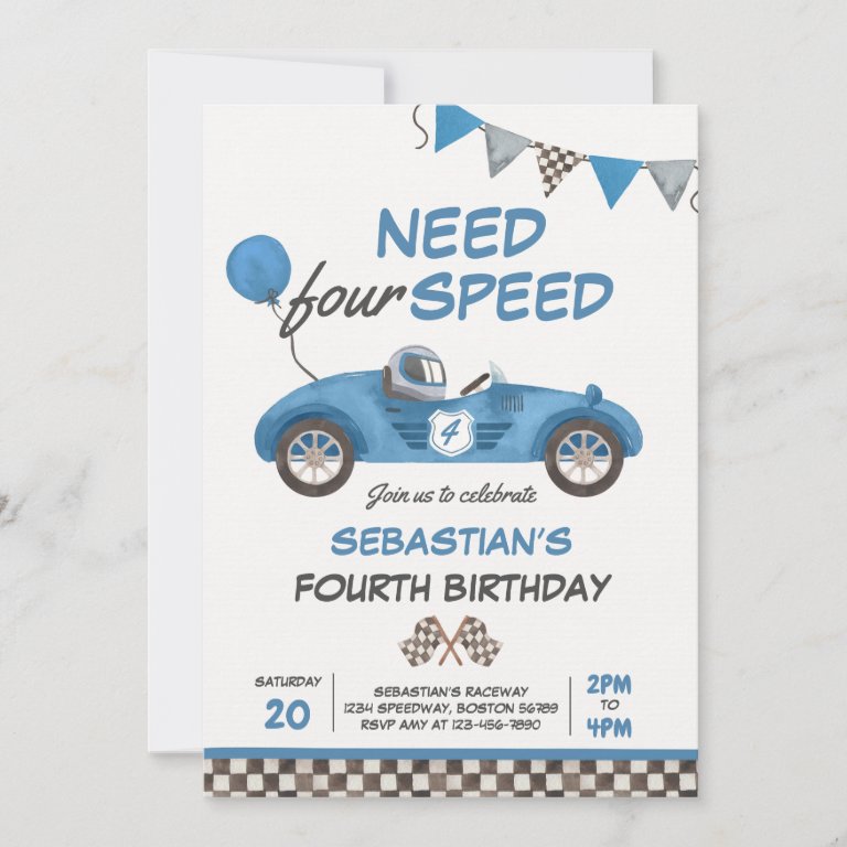 Need Four Speed Blue Race Car 4th Birthday Party Invitation birthday invitations Need Four Speed Blue Race Car 4th Birthday Party Invitation $3.08 by PixelPerfectionParty Comments