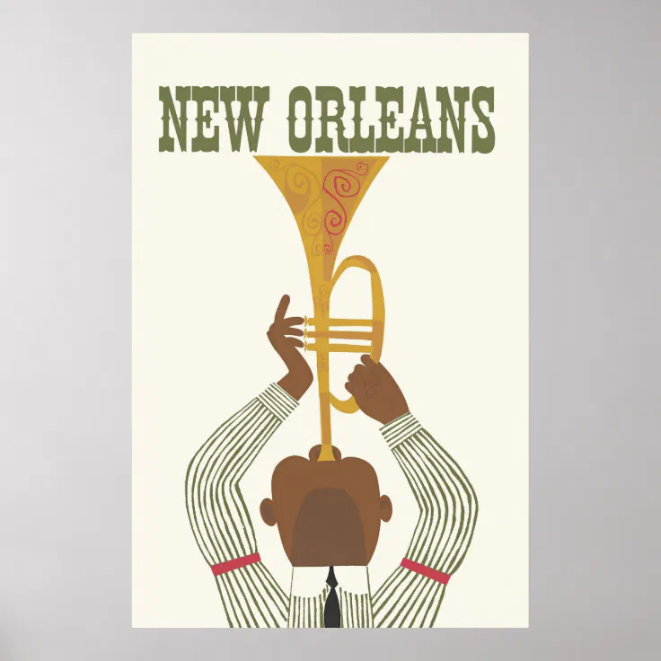 New Orleans Jazz Travel Poster vintage travel wall decor New Orleans Jazz Travel Posterby O_CorrelleeRecommended sizes: Extra small, Small, Medium, Large and Extra large. If you need some other size, please contact me. Thank you. New Orleans is a Louisiana city on the Mississippi River, near the G Comments
