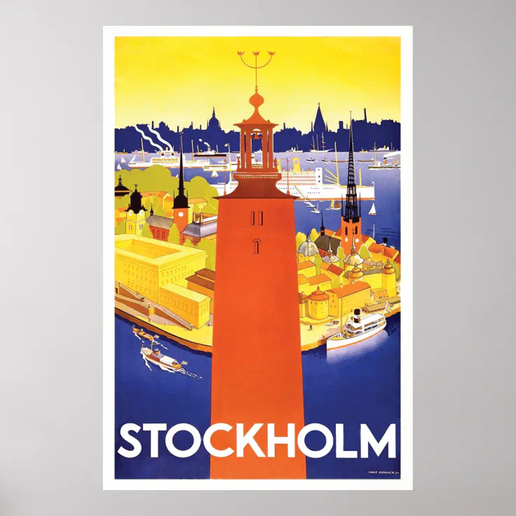 Stockholm, Sweden, View on the City Harbor Poster vintage travel Stockholm, Sweden, View on the City Harbor Posterby Backpack_designVintage travel postcard Comments