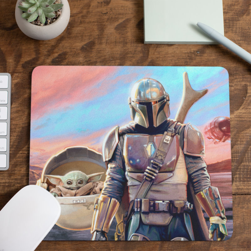 Get ready to join Mando and The Child as they journey throughout the galaxy aboard the Razor Crest. Taking on many challenges along the way and meeting an array of different characters, this is the dream team to have on your side on any intergalactic mission. This classic image can be used to personalize a range of products - the possibilities are endless!