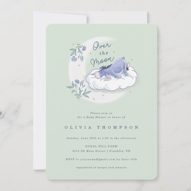 Eeyore | Over the Moon - Mint Green Baby Shower Invitation baby shower invitations winniethepooh Eeyore | Over the Moon - Mint Green Baby Shower Invitation $3.32 by winniethepooh Comments
