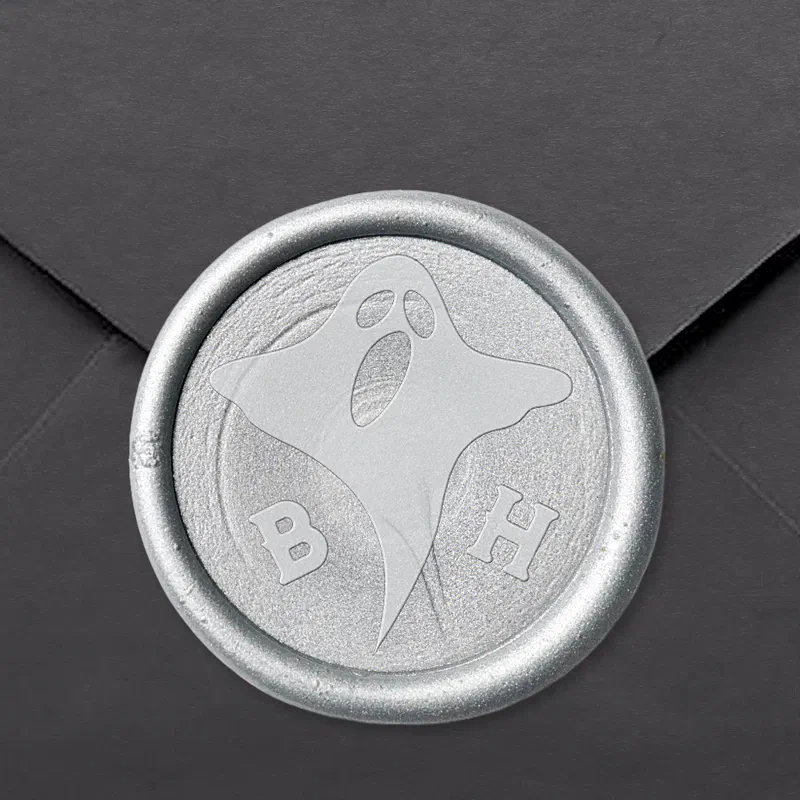 Celebrate the spooky Halloween season with these gothic ghost wax seal stickers. The design includes a screaming specter and two of your personalized monogram letters. The easy template field makes it