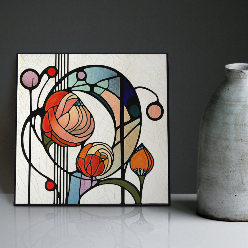 This ceramic tile features bold geometric shapes and intricate floral patterns reminiscent of the iconic style of Mackintosh. He was a prominent Scottish architect, designer, and artist of the Art Nouveau movement. Clean lines, geometric shapes, and a strong sense of symmetry characterize his work. These elements are beautifully represented in our collection of ceramic tiles. Mackintosh's designs continue to be celebrated for their timeless beauty and influence on modern design. The use of his style in your home or business can add a touch of elegance and sophistication. These tiles are perfect for adding a unique and stylish accent to any room. They are also highly durable and long-lasting. Please visit my shop for more designs!