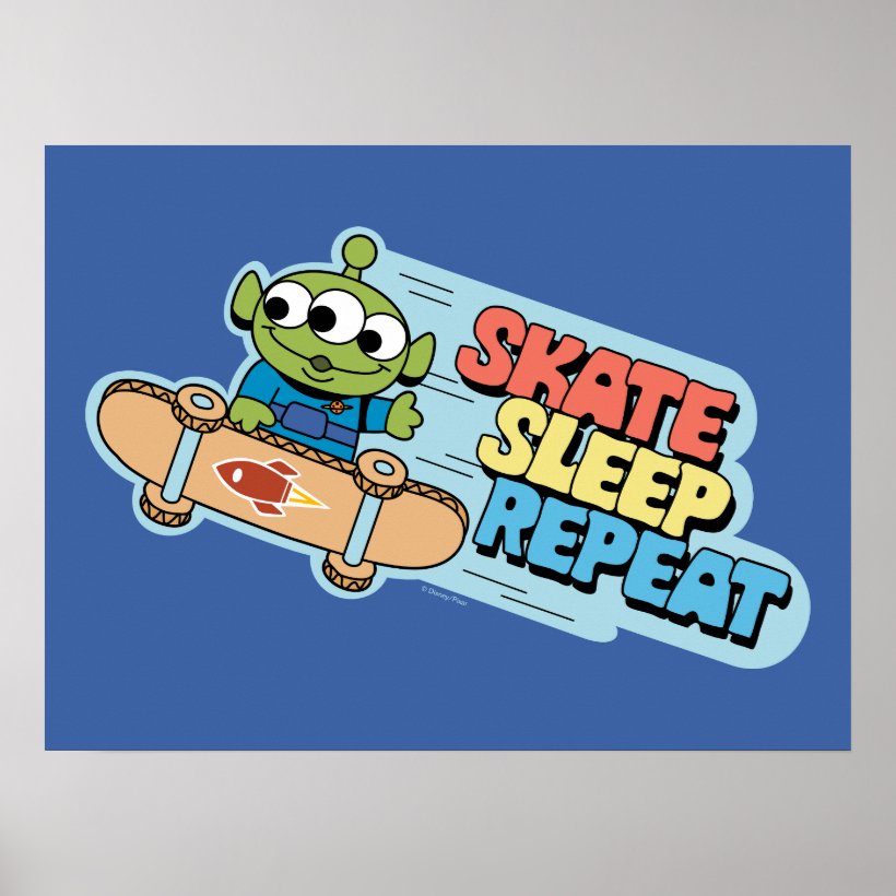 Toy Story | Little Green Men Skate Sleep Repeat Poster