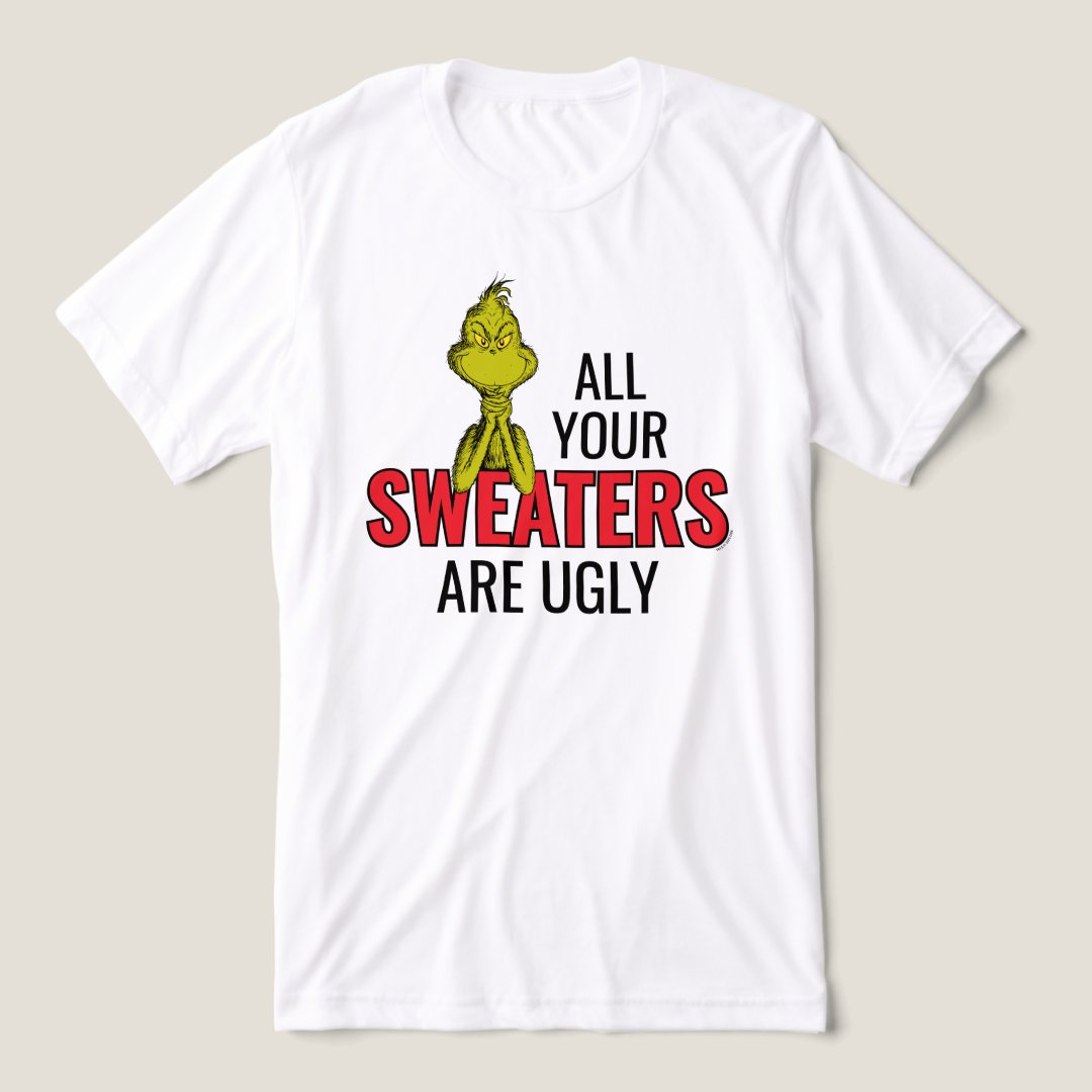 Grinch All Your Sweaters Are Ugly christmas drseuss Grinch All Your Sweaters Are Uglyby DrSeussShopEmbrace your inner Grinch and let everyone know how you really feel about their holiday fashion! This officially licensed Dr. Seuss's The Grinch T-shirt features the iconic green curmudgeon with a sup Comments